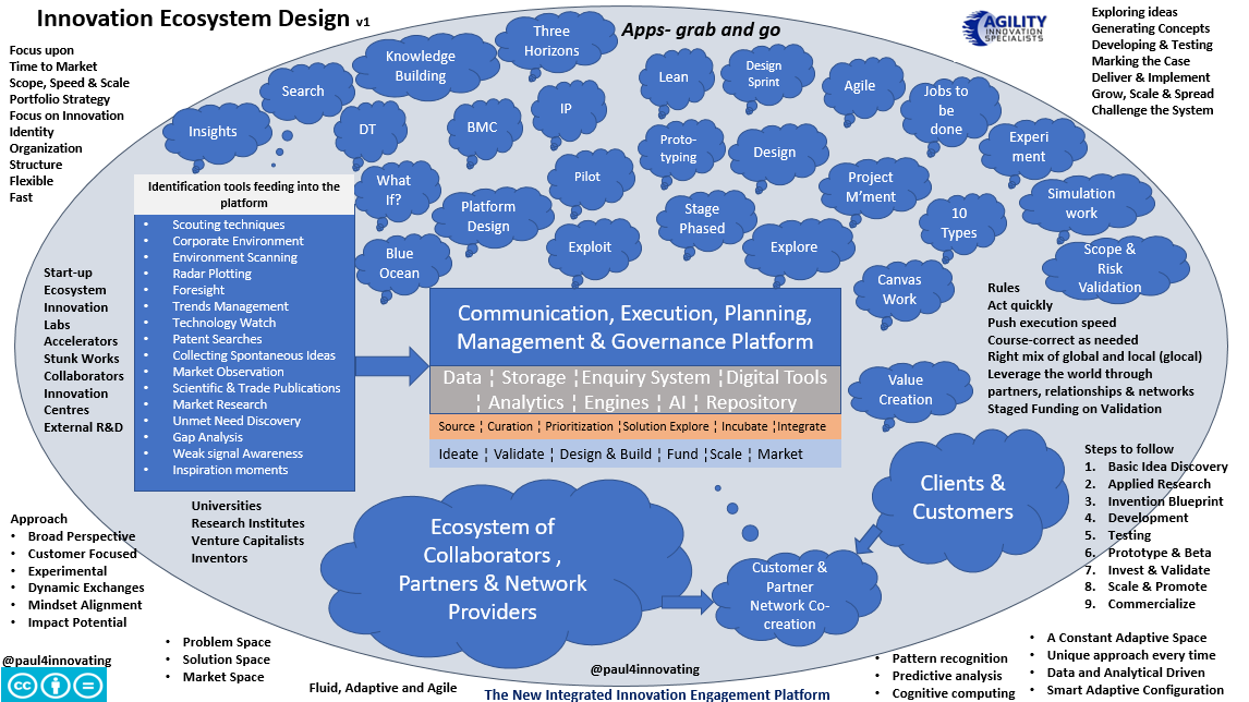 It does not capture everything but it provides the scope of the undertaking. To deliver on this requires a sizable commitment from an organization wanting to lead in building an innovation ecosystem design, that brings innovation up to date, in a connected process and far more fit for purpose? I’d love to engage on this to realize its potential.