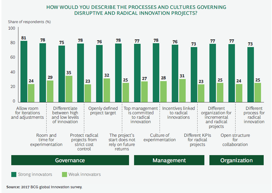 To finish BCG provided this visual to outline the processes and cultures that can govern disruptive and radical innovation projects, as digital innovation transformation is certainly that