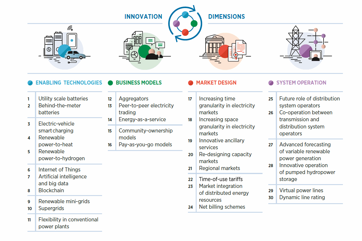 Take a look at the way IRENA is breaking down the innovation dimensions in this visual that covers 30 key innovation dimensions that will drive energy transitions across enabling technologies, new business models, different market designs, and system operation.