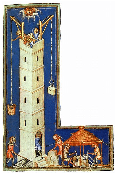 German Late Medieval (c. the 1370s) depiction of the construction of the tower.